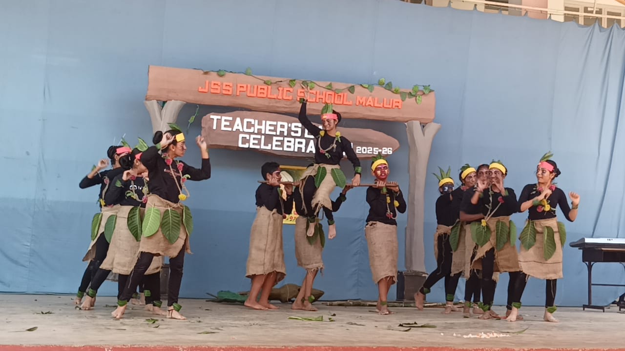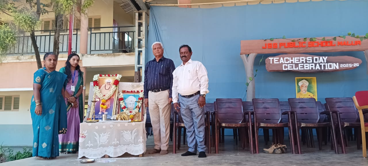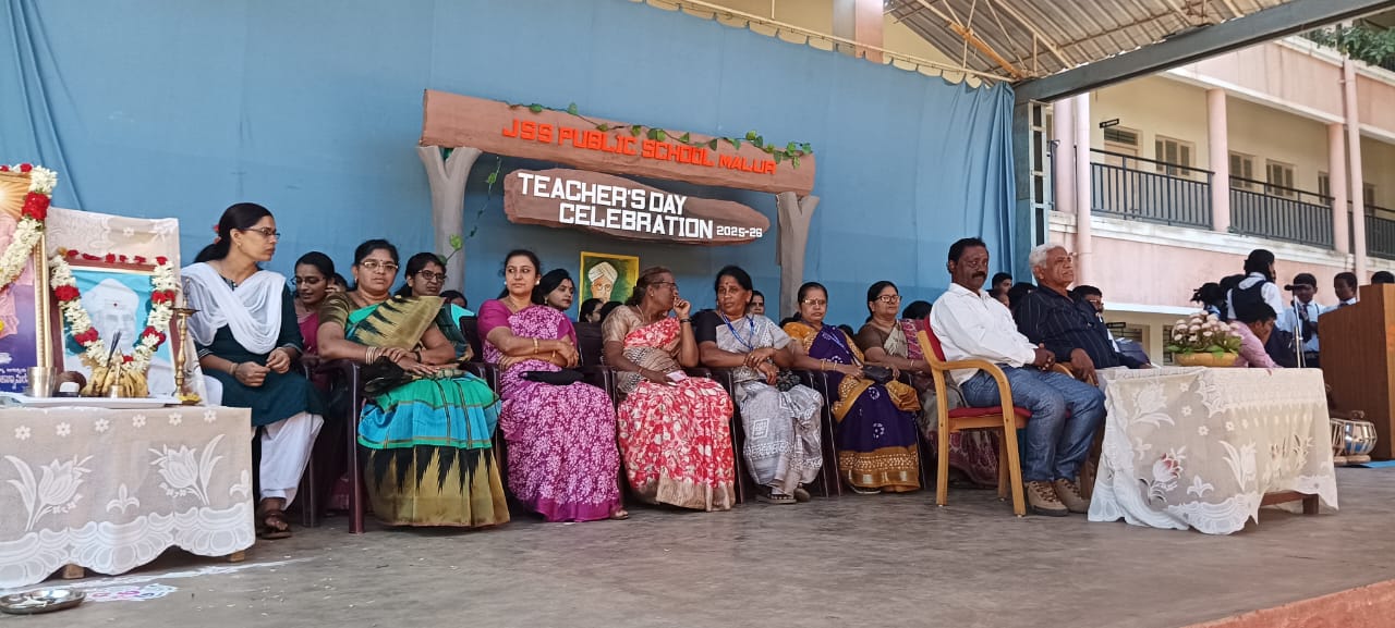 On 8th September, Monday, JSS Public School, Malur celebrated Teachers’ Day to commemorate the birth anniversary of Dr. Sarvepalli Radhakrishnan, a distinguished teacher, philosopher, and scholar. A special assembly was conducted in which the coordinator and the principal were honoured on the stage. Ten students presented a special dance, students of Grade 8 performed a vibrant tribal dance representing different houses, and various lectures were organized highlighting the importance of teachers and education. The day was colourful, lively, and left everyone with cherished memories.